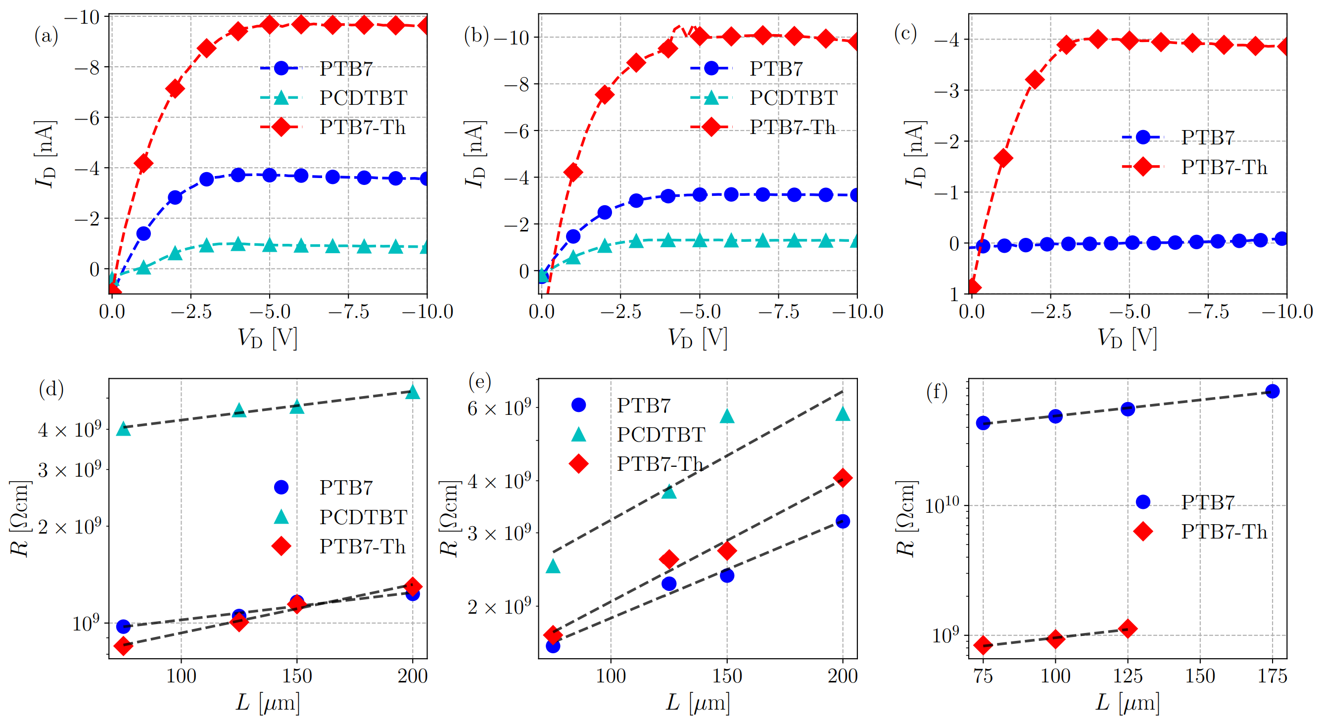 Charge injection from inorganic electrodes to organic semiconductors is crucial to the working of organic devices. However, such interfaces are resistive to charge transfer. Its been considered that the resistane arises because of an energy level mismatch between electrode and semiconductor sets up an energy barrier. Several other effects arising from interactions of inorganic and organic layers, such as pillow effects, defect generation, or interfacial induced states further append the energy barrier. However, it has been noted that the difference between energy levels of electrode and semiconductor do not directly predict device resistance. We fabricated nine sets of transistors with three different polymers (PTB7, PCDTBT, PTB7-Th) and three electrodes (Au, Ag, MoO3), and measured their contact resistance by transfer length method. Devices with PTB7-Th tended to have low contact resistance regardless of electrode, despite the orbital elvels of all three polymers being similar.